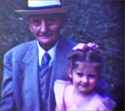 I never met my grandfather. He died five years before I was born. We have 16 mm film from the 1940s and there I can see my grandfather. At a family picnic a year before he died, he looks dapper in a three-piece suit, straw hat, and my older sister on his lap.